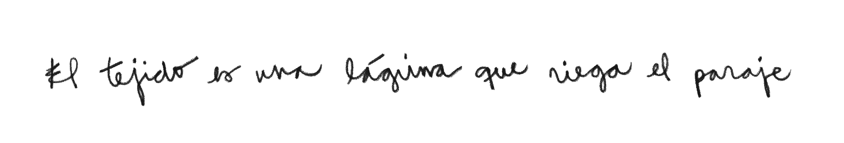 El biomimetismo ha permitido que los seres vivos aprendamos de los métodos de creación y resolución de problemas a través de observar a otras especies. El tejido es una práctica realizada por pájaros, arañas, jabalíes, hongos, avispas y hormigas, entre muchos otros tejedores no humanos. El proyecto “Un tejido es una lágrima que riega el paraje” plantea la creación de una serie de obras textiles inspiradas en las técnicas de recolección en el mundo animal. Los textiles están construidos con fibras vegetales recolectadas por mí en distintas zonas de México.