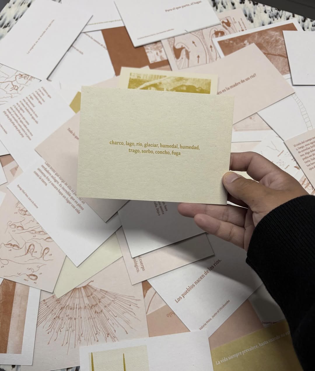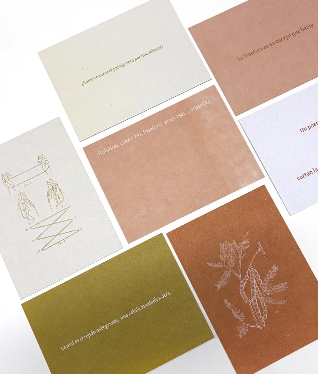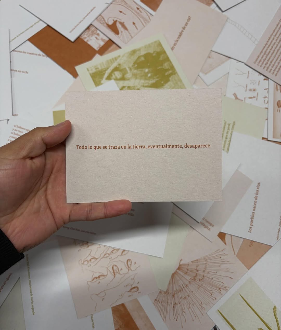 Esta publicación es un fichero que la artista Antonia Alarcón (Santiago de Chile, 1994) ha realizado como parte de su investigación en años recientes. En las fichas, su escritura y dibujos conviven con voces de ensayistas, poetas, científicas, antropólogas, defensoras del territorio y artistas; con imágenes, diagramas, mapas y materiales diversos que generan un flujo continuo que alimenta la práctica artística y sensibilidad de la artista.