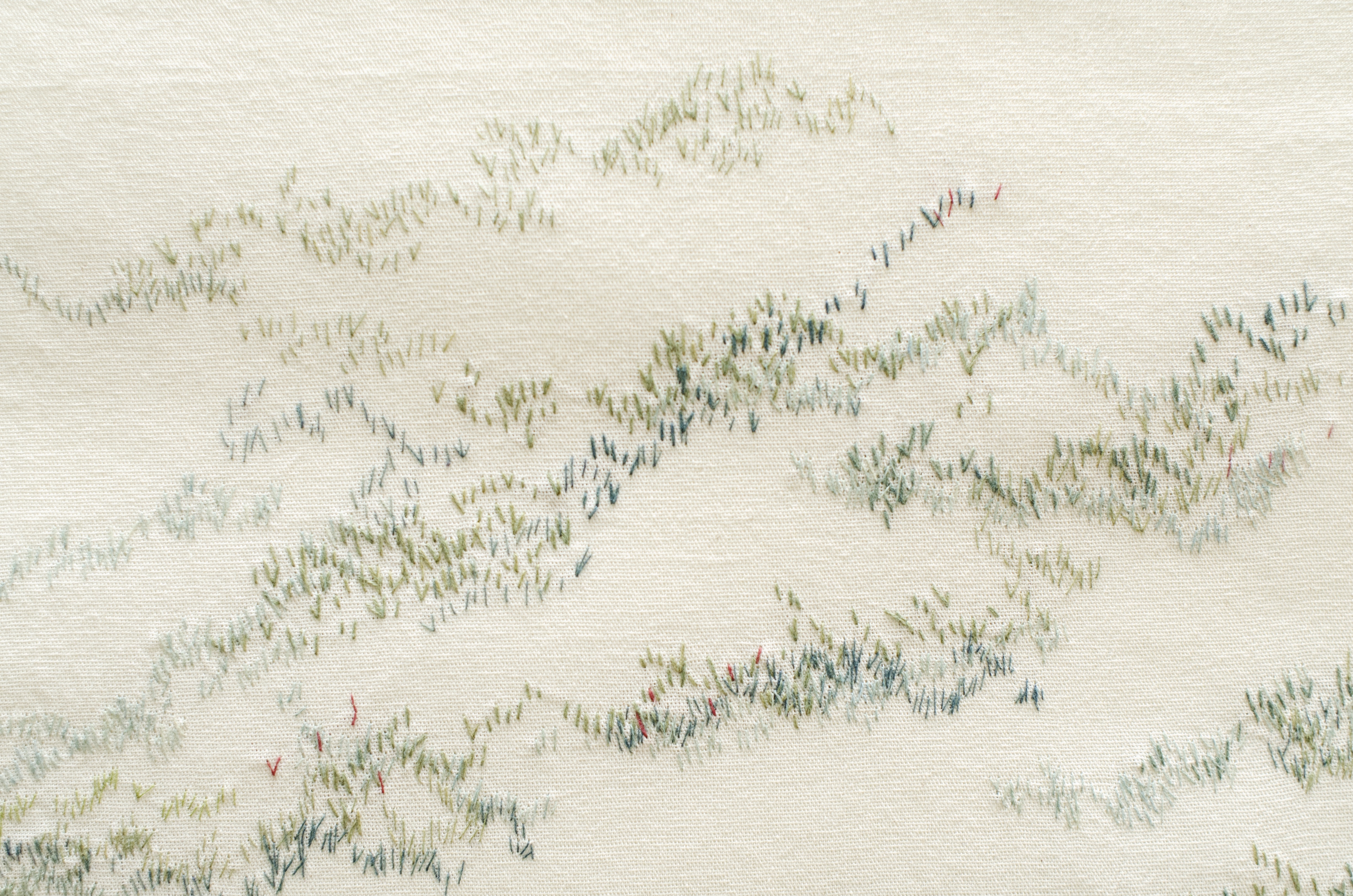 México está inundado de ríos invisibles, de pies que recorren el territorio en silencio. El proyecto Todos los pastos del mundo plantea la creación de una serie de mapas bordados que ilustren distintos flujos migratorios en México, representados como las distintas formas que tienen las plantas de migrar (esporas, rizomas, semillas, traslado, entre otras). Estos se realizan a partir de la visualización las estadísticas según las puntadas de cada bordado, trazando los recorridos migrantes por el territorio mexicano.